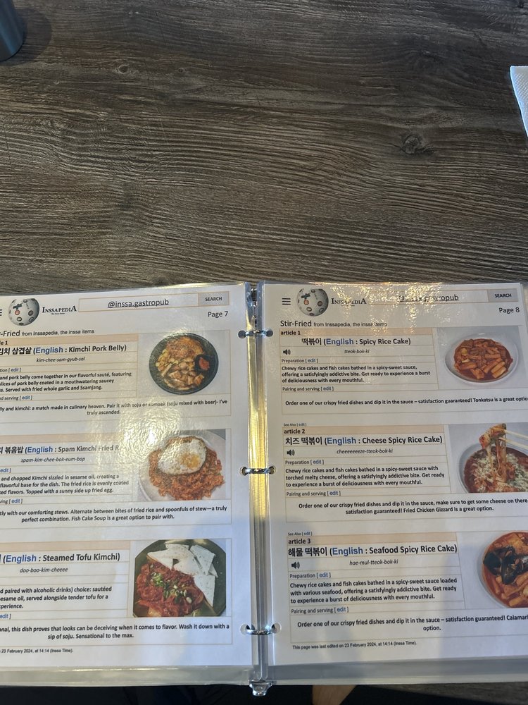 Inssa Korean Gastropub, located in Chino Hills, CA, is a hidden gem offering Korean cuisine in a trendy and hipster setting. With a diverse menu that includes seafood pancakes, Rose Pasta, Tofu Kimchi, and steamed cheese egg, this gastropub provides a unique dining experience. Customers rave about the delicious and fresh food, friendly service, and comfortable atmosphere. The owner, Jack, and his staff go above and beyond to make patrons feel welcome and at home. The vibrant decor, modern ambiance, and K-pop music create a lively vibe perfect for a night out. While prices may be on the higher side, the quality of the food and the overall experience make it worth it. Inssa Korean Gastropub is a must-visit destination for those craving Korean flavors in a fun and memorable setting.